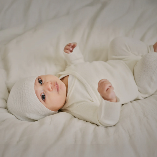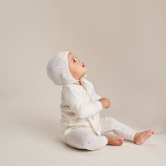 Pointelle Wrap Top, Leggings & Bonnet Set
